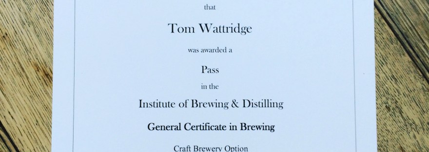 I am now officially sanctioned by the Institute of Brewing and Distilling to generally brew. In other words I passed the General Certificate in Brewing exam. Well chuffed about it obviously, it gives me a good base of all-round brewing knowledge and it's a great stepping stone to bigger things.